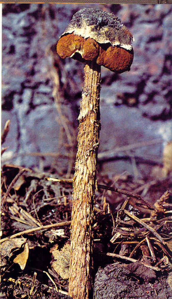 Spore su formirane unutar glave, kao I kod gljive “Puff ball”( Langermannia gigantean), I postaju slobodne kada koza sklizne sa vrha glave.