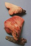 Ovo je gljiva potpuno odgovarajuceg imena, kada je sjecete lici na meso, izgleda I okusa je sirovog odreska.Gornja strana joj je crveno-smedja , a donja strana prekrivena zuckastim porama – sto podsjeca na volovski jezik (na francuskom “oxtongue”).