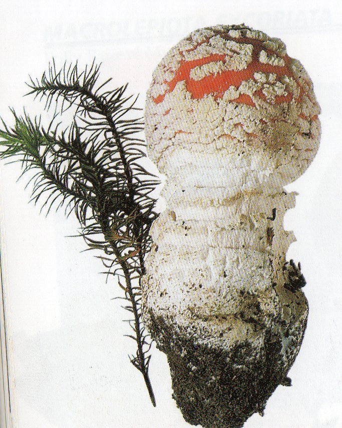Korjen-stabljika je bijel, paperjast, cvrst a potom supalj, sa velikim , objesenim I krhkim prstenom, koji promijeni boju u lagano zutu I ciji debeli rub moze biti izreckan u obliku vrha kule na tvrdjavi.Bulba na vrhu ima dvije ili tri kao pamucne pahuljice koje lako odpadnu ili lice na dva bradavicasta grebena.