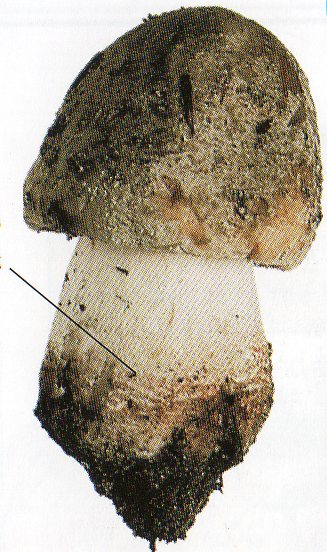 OPIS: Focht “Sesir 15-17 cm a i do 23 cm, meso debelo.Ovo meso joj, medju svim Amanitama samo njoj, pocrveni, ili je vec od pocetka crveno u dnu drska, narocito u rupicama koje su gotovo uvijek izdubili crvi, a pocrvenit cce posvuda, ako ne ubrzo nakon preloma, tada najkasnije za dva sata.Njeno crvenilo je boje vina, odnosno cigle, pa ako na njega obratimo paznju, ne mozemo se zabuniti u odnosu na sve druge Amanitae, osim na A.pseudorubescens.