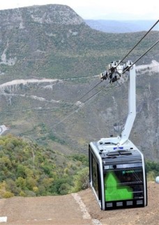 U podnožju Vorotana, planine blizu granice s Iranom, armenski predsjednik Serž Sarkisjan i poglavar armenske apostolske crkve Karekin II., zajedno s drugim brojnim uglednicima, ukrcali su se na prvu vožnju žičarom.