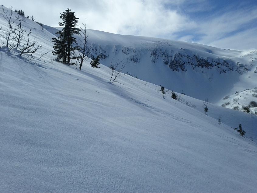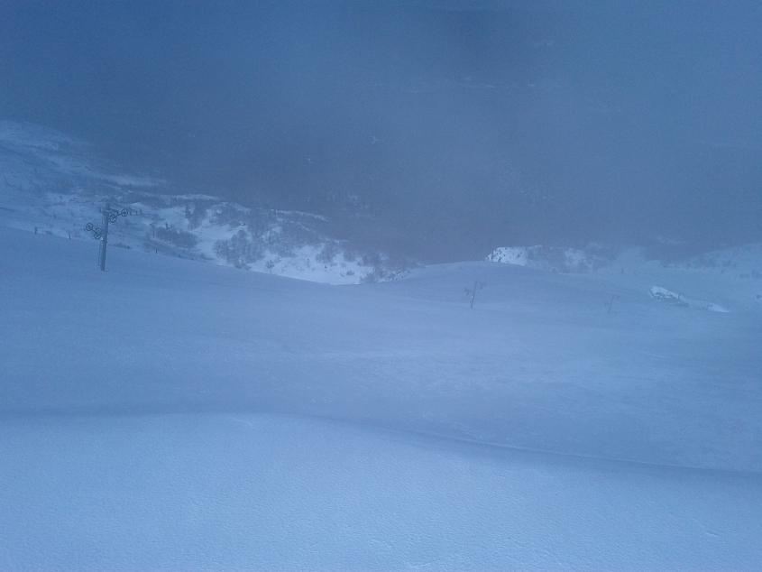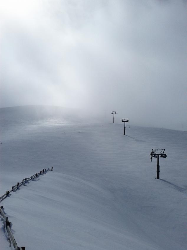 Isplatilo se popeti gore na vrh, gdje je jaci juzni vjetar stvorio dovoljno jaku koru, dobru narocito za sire skije i bord. Suncevi zraci koji se probijaju kroz visoke oblake nalik na maglu, davali su planini posebnu misticnu atmosferu.