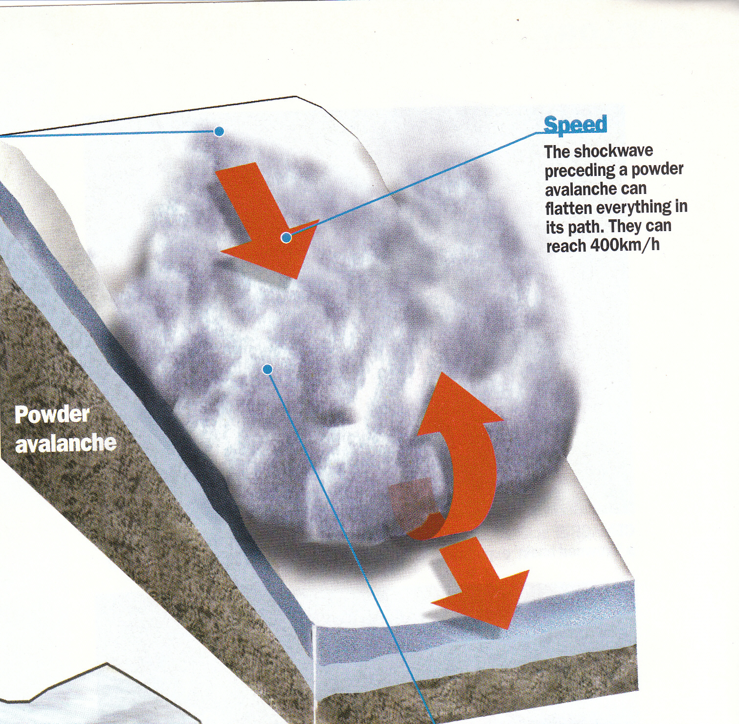 Lavine od snijeznih izlomljenih ploca dostizu brzinu I do 130 km/s !