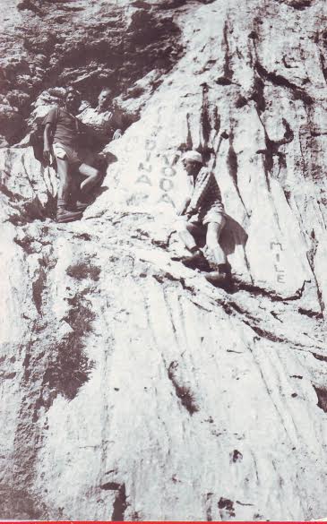 Na ovom fotosu pred brvnarom Vilenica, gdje smo se sreli sa Dragom i Terom Entraut, (?) a ledjima je okrenut Miro Vobornik dok su na desnoj strani Damir Zivojevic, Slavica Prapotnik i Minkica Veskovic.Dok Drago i Tera prave rucak od svjeze ubranih gljiva rujnice (Lactarius deliciosus), do njih su pri kafi: Slavica Prapotnik (Bulajina sestra), Vesko, ispod njega Goga Mioc a skroz desno su Nikola Mioc i Bulajic Dragan.Ovdje je Vesko sa grupom mladih planinara iz Jablanice kao prethodnica uspona na veliki Vilinac.Vesko ispred planinarskog doma Veliki Vilinac koji je bio spaljen a potom poslije rata izgradjen novi.Pred PD Veliki Vilinac smo sa llijeva na desno: Minka Veskovic, Nikola Mioc, Dragan Bulajic, Slavica Prapotnik, Goga Mioc i Damir Zivojevic a ja sam slikao;