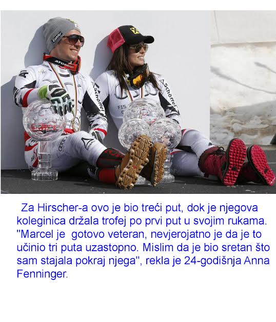 Nosioci velike kristalne kugle svijetskog kupa za 2014 godinu su Anna Fenninger i Marcel Hirscher obadvoje iz Austrije.