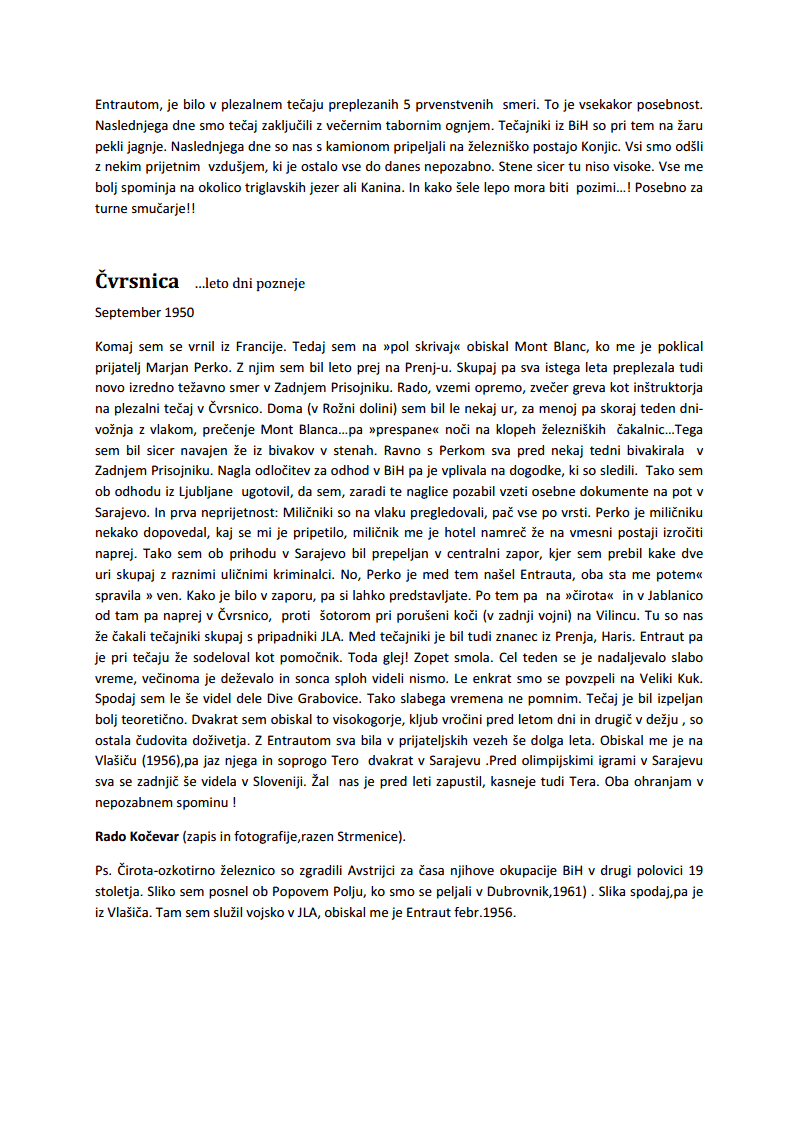 Iz rukopisa planinarske knjige u pripremi autora Rade Kočevara, jednog od najstarijih živih slovenačkih alpinista.