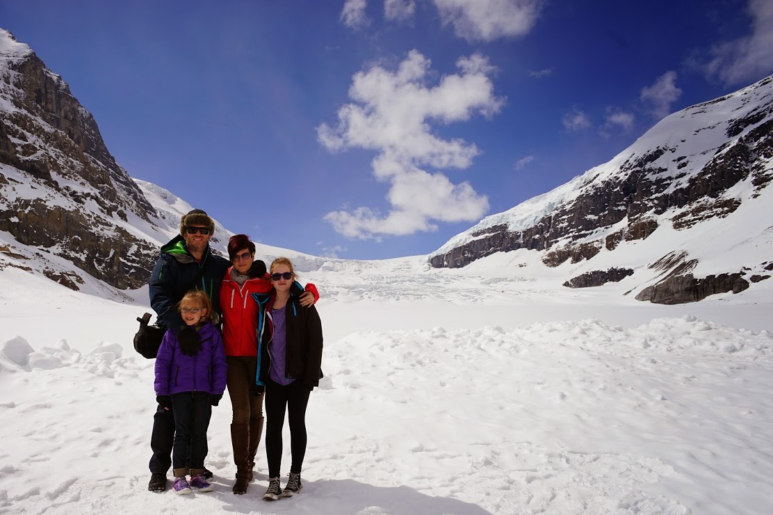 Dejan, Dzeni, Mia i Lara Slokar na gleceru Atabasca