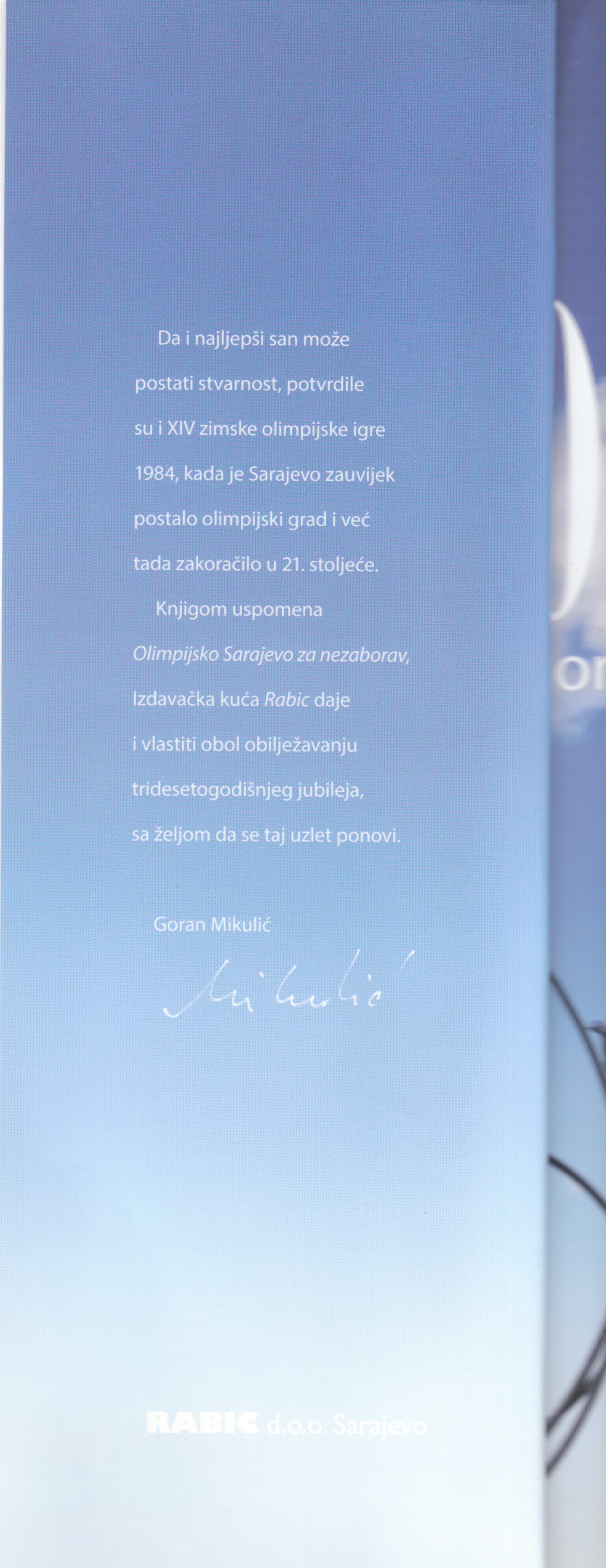 Nedavno je (konacno) u Sarajevu iz stampe izasla knjiga pod naslovom “Olimpijsko Sarajevo za nezaborav”,