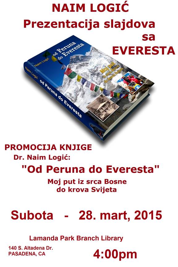 U Pasadeni, CA se naredne subote planira prezentacija slajdova sa moga uspona na krov svijeta!