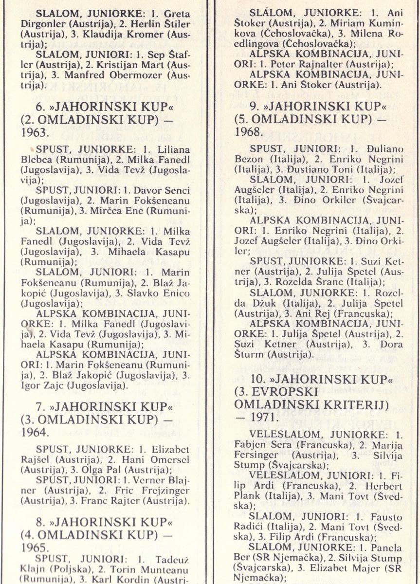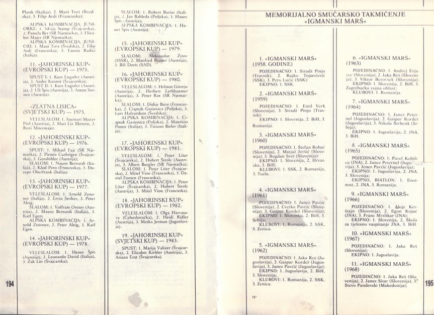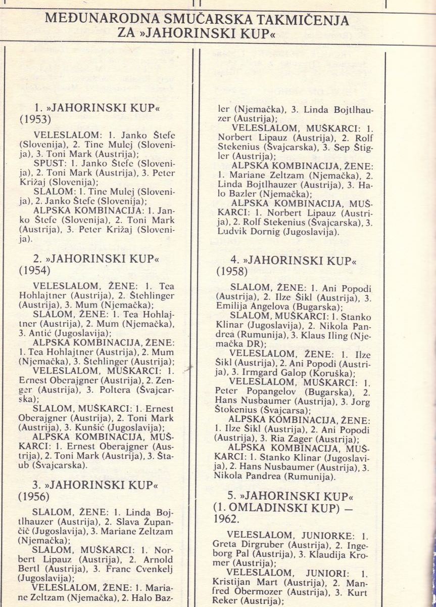 Medjutim, mi smo, nakon Slovenije, u SFRJ bili druga republika po skjaskoj tradiciji i razvijenosti smucanja i zimskog turizma uopste. Da nismo bili nepoznati u Svjetskoj smucarskoj organizaciji (FIS) vidi se i iz ovih podataka koje posudjujemo iz ove lijepe knjige. Mi smo sa smucarskim sportskim priredbama evropskog nivoa zapoceli davno (1953) a zavrsili pred same ZOI’84. koje su bile svojevrsna nagrada za sve do tada uradjeno.