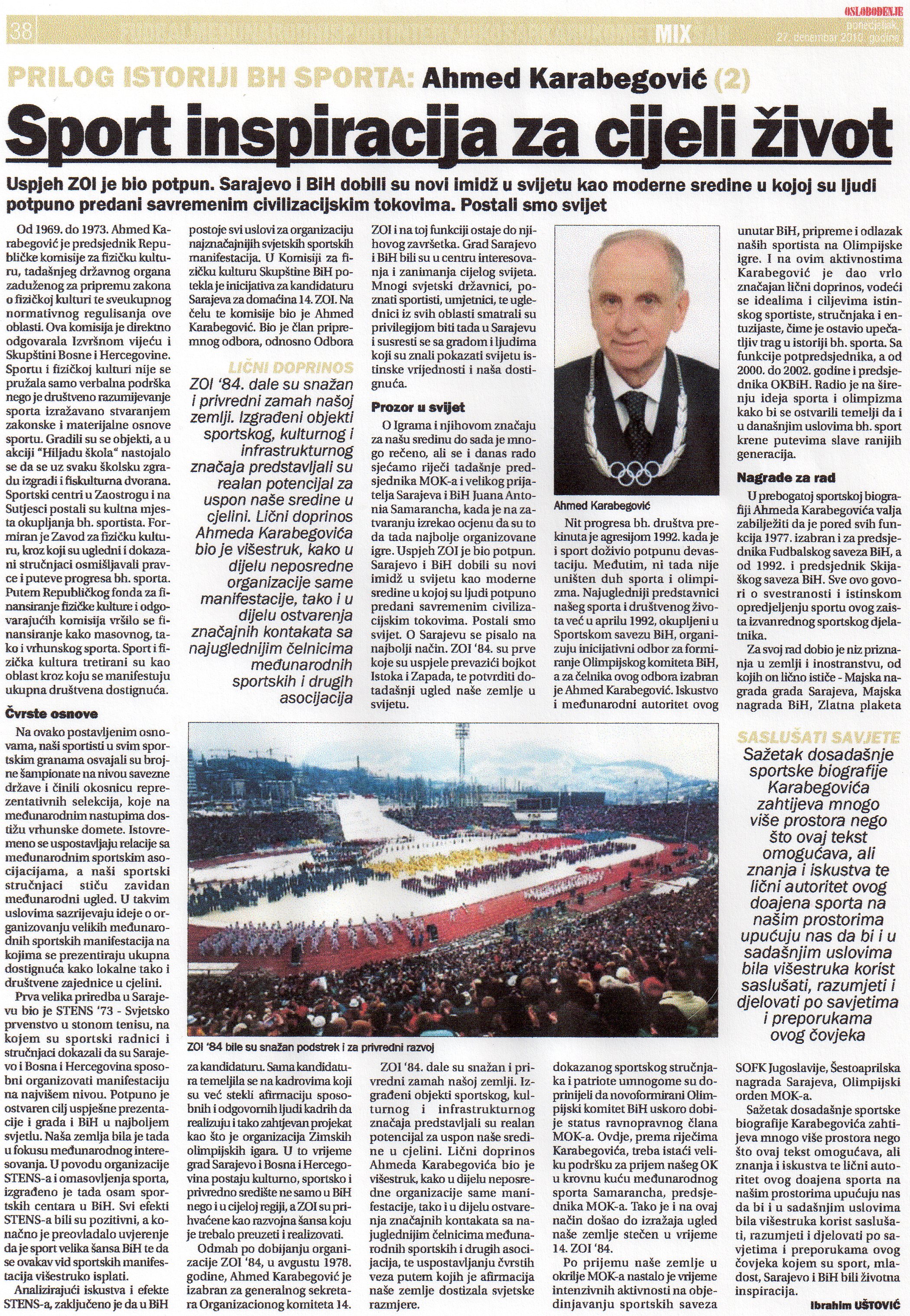 S vremena na vrijeme se u sarajevskom dnevnom listu “Oslobodjenje” mogu procitati tekstovi o zivotu sportskih radnika ili njihove radne biografije, koje vrijedno pise Ibrahim Ustovic.