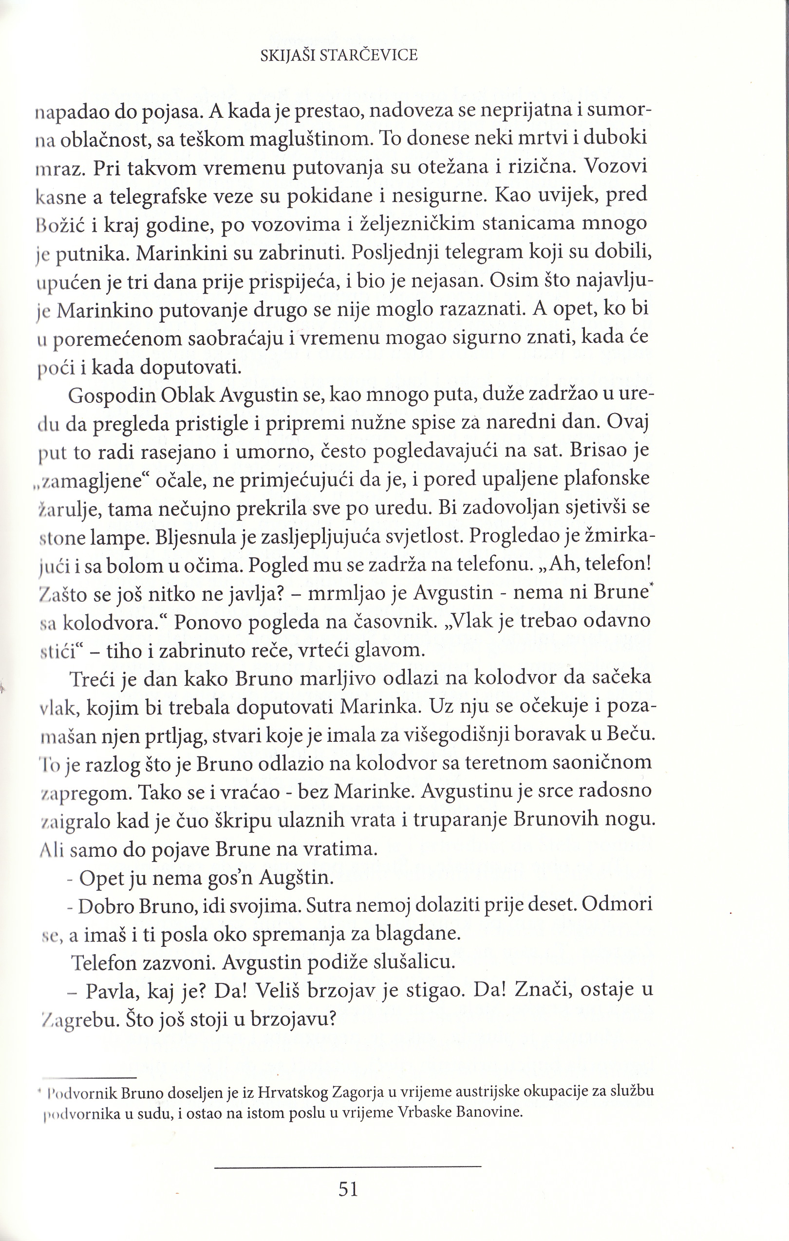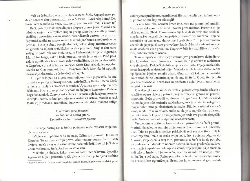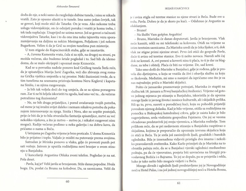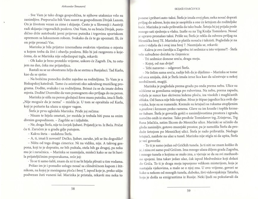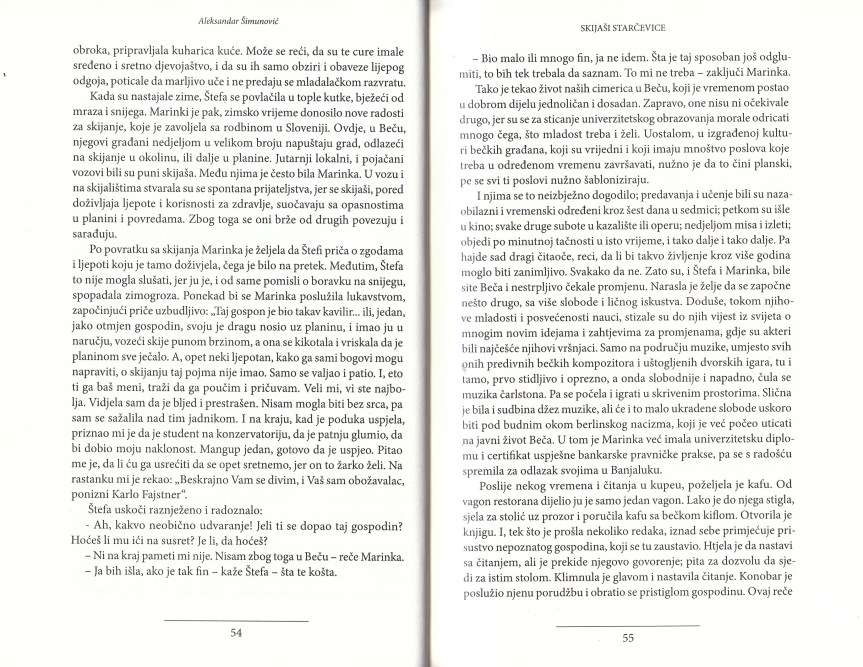 Nedavno je iz štampe izašla knjiga “Skijaši Starcevice” u kojoj je autor Aco Šimunović iz Banjaluke objavio i nekoliko lijepih i toplih priča koje, osim sto govore o putevima razvoja skijanja u ovom kraju, uvijek oživljavaju i nekog od junaka koji je zaslužio da bude zapamcen, ustvari, nekoga od ljudi koji su neizmjerno volili skijanje i planine i svojim angazovanjem pomogli da se razvije i dugi niz godina odrzi smucarska aktivnost u Banja Luci i njenoj okolini. Koliko ljubavi i strasti prema snijegu, druzenju i Starcevici je stalo u Acine divne price!