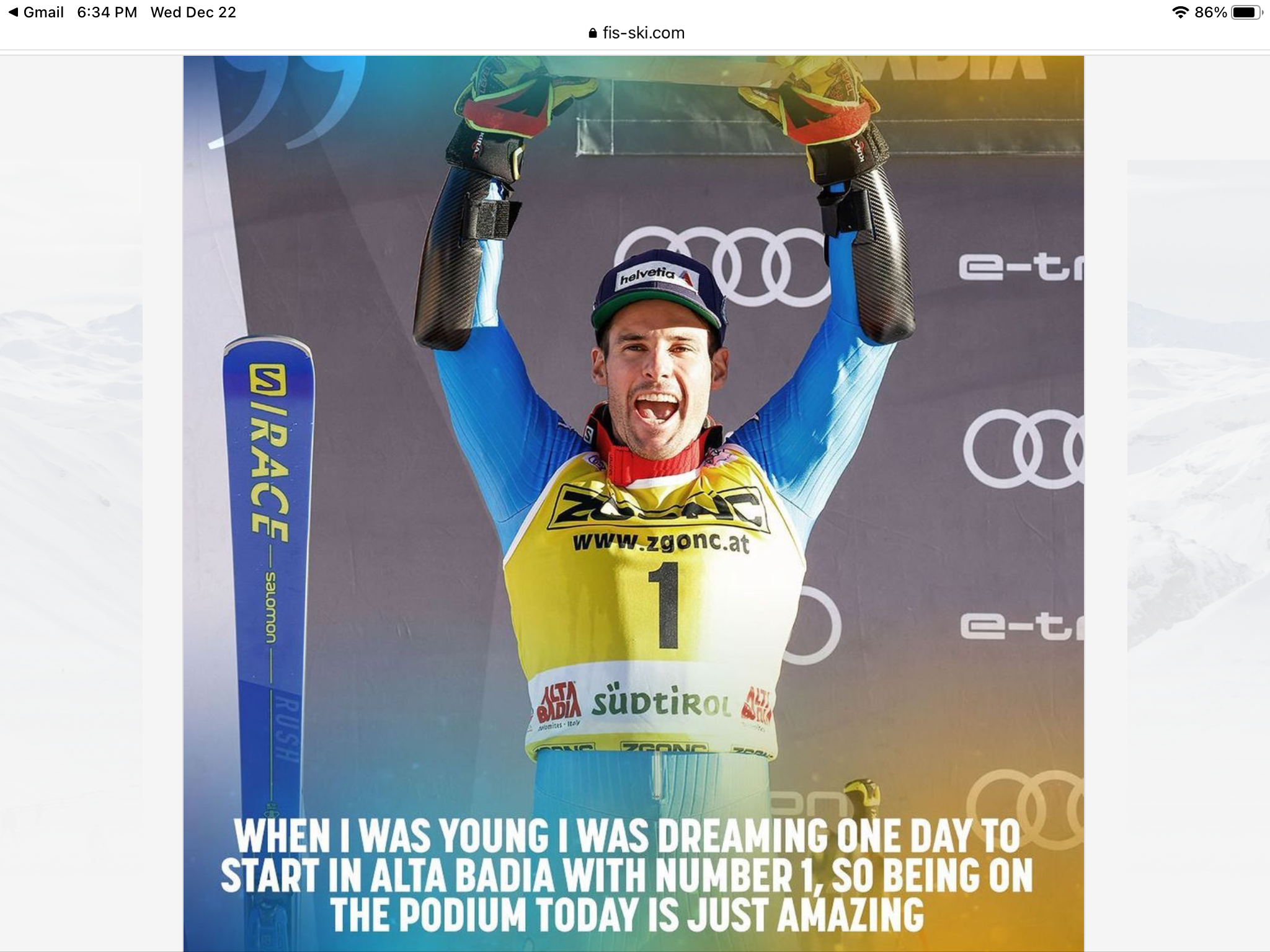 Za de Aliprandinija (ITA) je to bio i dan iz snova jer je osvojio svoje prvo postolje Svjetskog kupa u veleslalomu u Svjetskom kupu.