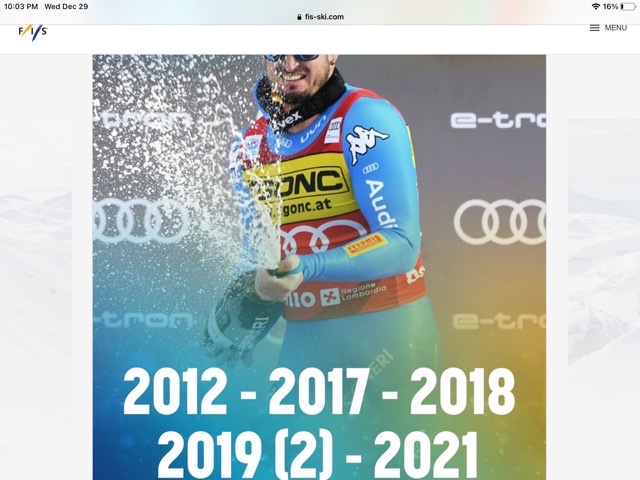 Paris je pobijedio u spustu u Bormiju 2012., 2017., 2018. i dva puta u 2019. Pobjedivši danas, Paris je također prekrojio povijest, postavši skijaš s najviše pobjeda u Svjetskom kupu u spustu na jednom skijalištu.