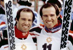 SARAJEVO, YUGOSLAVIA – FEBRUARY 19: US skiers Phil Mahre (R) and his twin brother Steve smile after the men’s slalom, 19 February 1984 at Mt Bjelanisca near Sarajevo, during the Winter Olympic Games. Phil Mahre won the gold medal and Steve, the silver. AFP PHOTO (Photo credit should read STAFF/AFP/Getty Images)