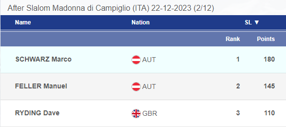 Izvanredan je to skijas i, s obzirom da je na zadnjoj trci u Slalomu za Svjetski kup koja je bila odrzana 22.decembra u Madoni di Campiglio bio TRECI, zapocinje sezonu 2024. na TRECEM mjestu FIS Slalom Liste.