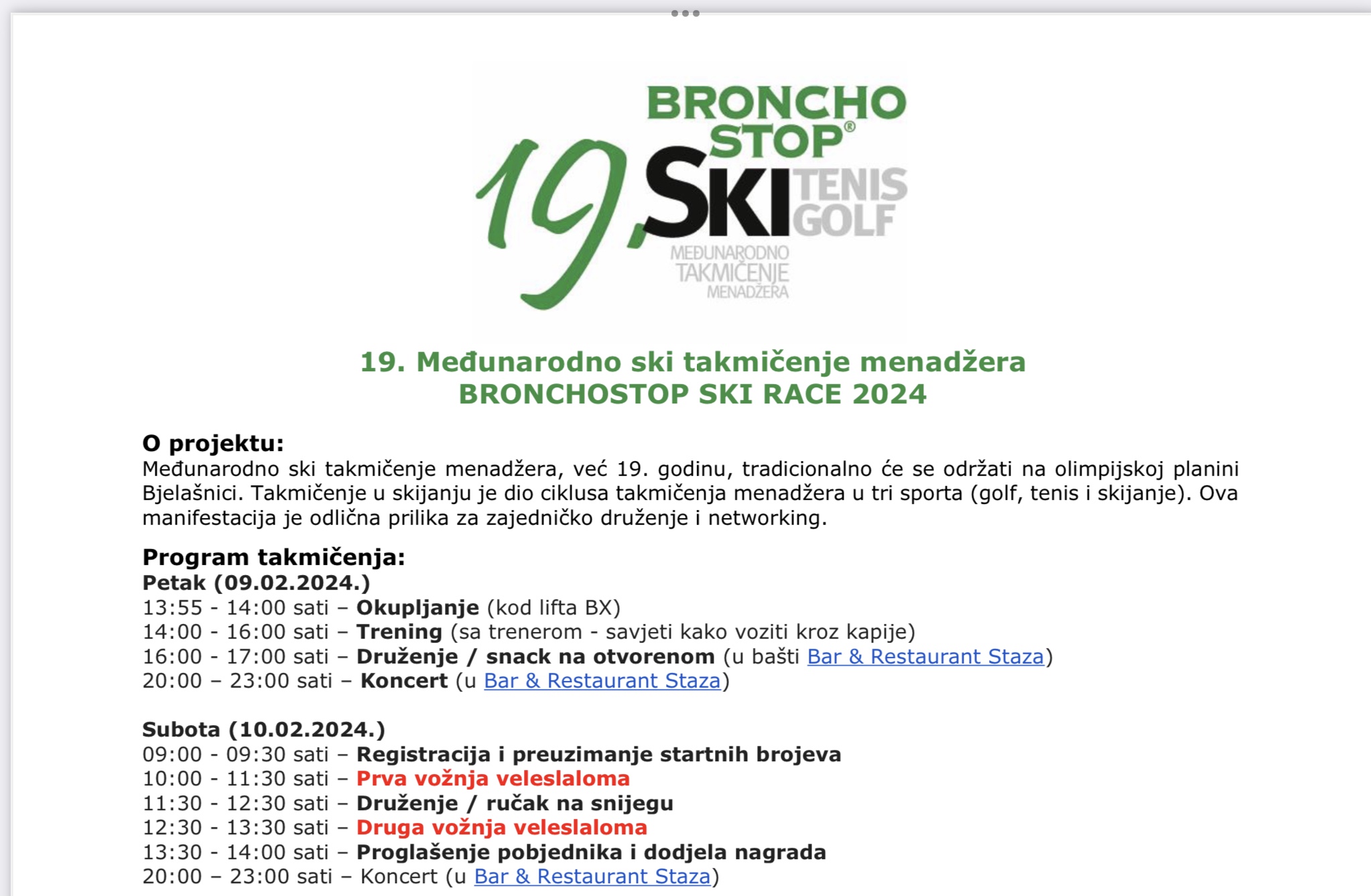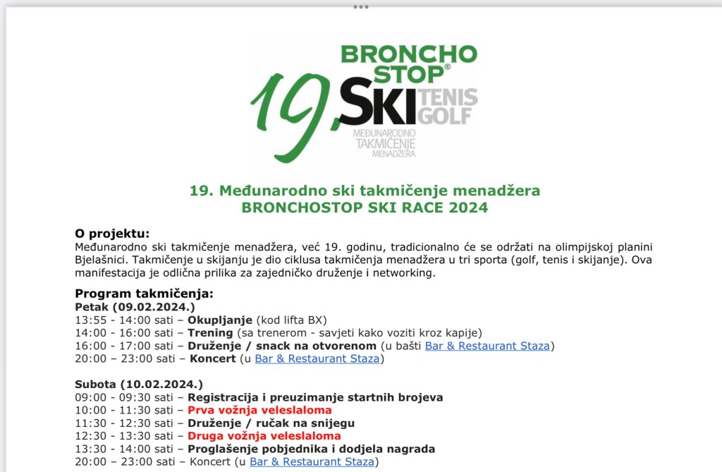 19.Medjunarodno ski takmicenje menadzera BRONCHOSTOP SKI RACE 2024.