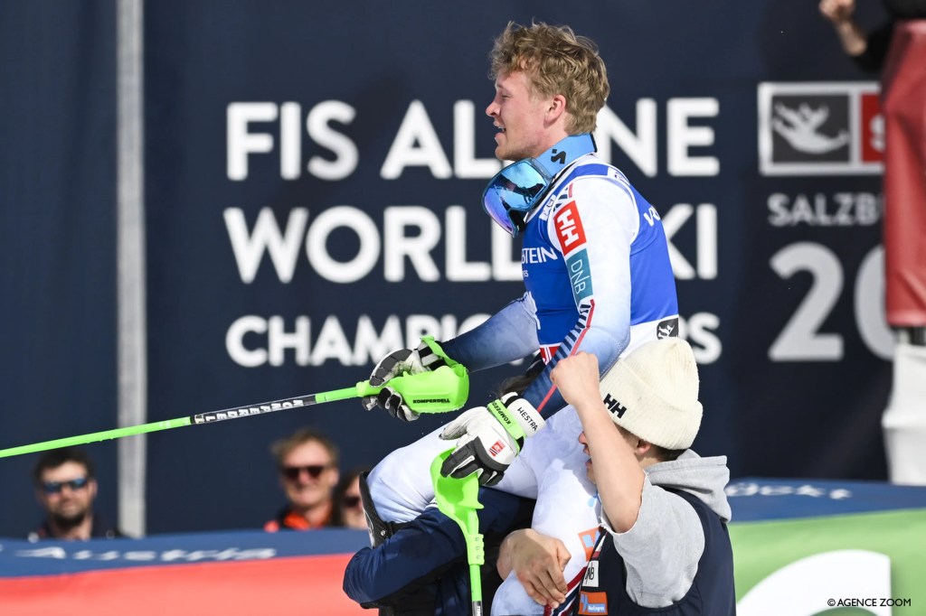Haugan (27 g.)je osvojio svoju prvu trku Svjetskog kupa u nedjeljnom slalomu u Saalbachu, konačno ostvarivši prvu slalomsku pobjedu Norveške .
