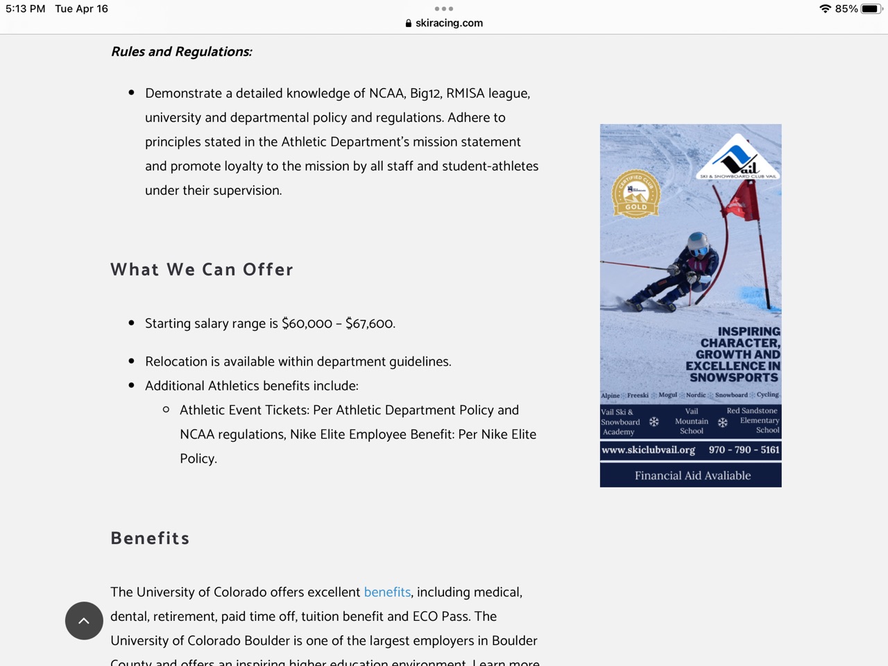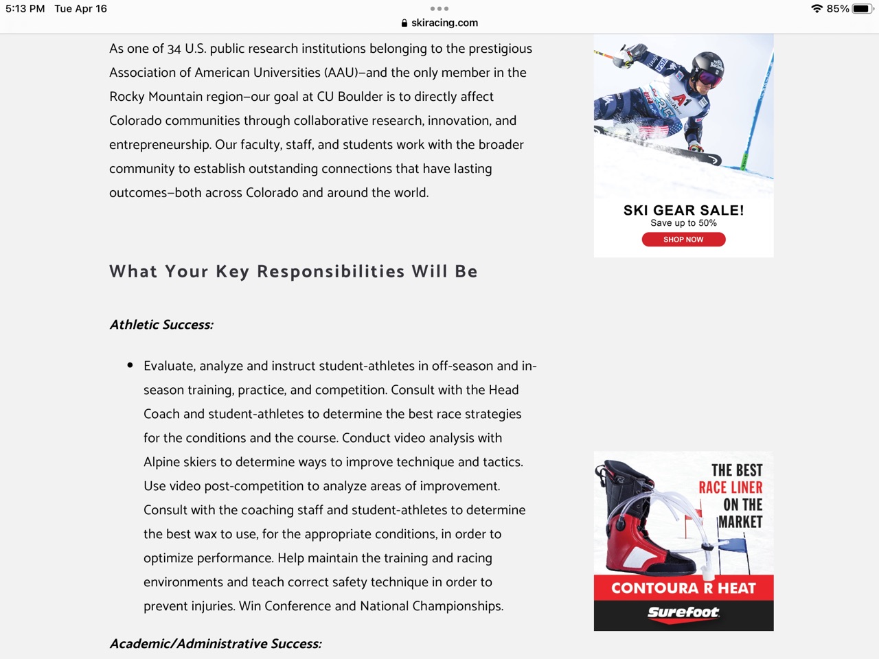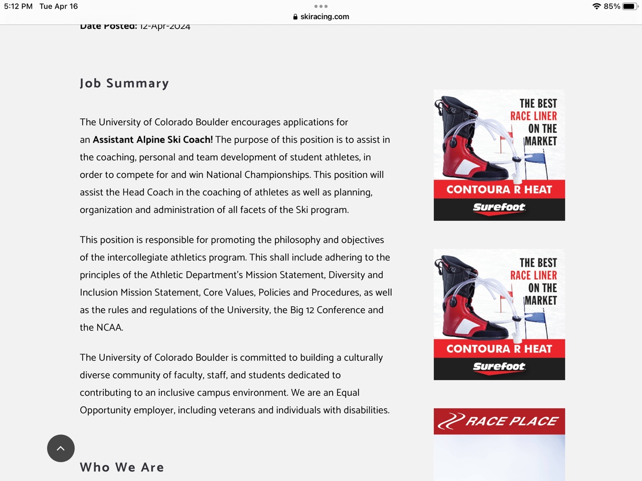 Univerzitet u Koloradu (USA) je raspisao Konkurs za pomoćnog trenera u Alpskim disciplinama!