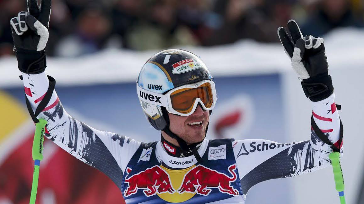 Hannes Reichelt of Austria reacts after competing in the men’s downhill race on Streif ski piste at the FIS Alpine Skiing World Cup in the Austrian alpine skiing resort of Kitzbuehel January 25, 2014. REUTERS/Leonhard Foeger (AUSTRIA – Tags: SPORT SKIING)